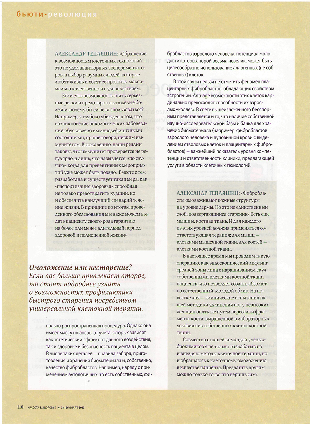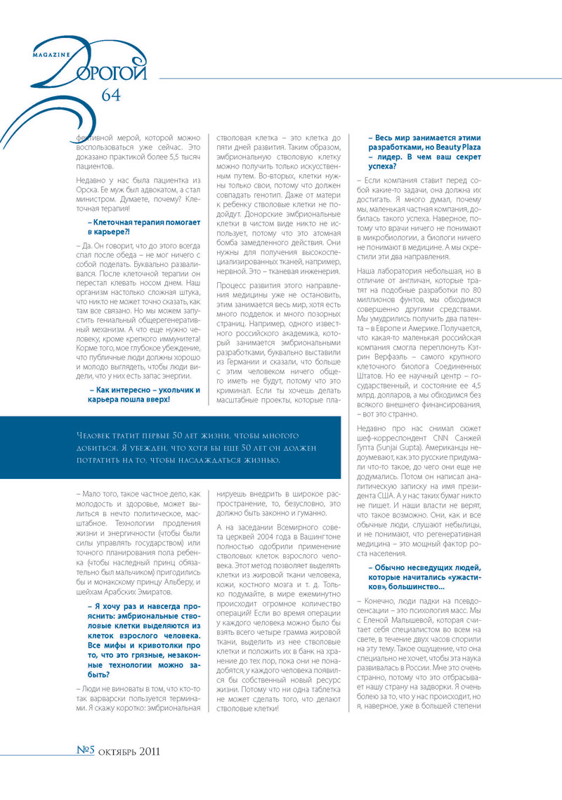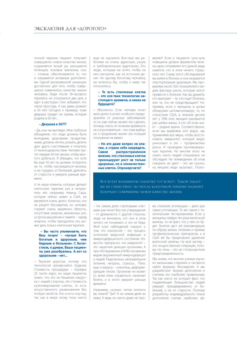 Пресса о Центре клеточных технологий молодости